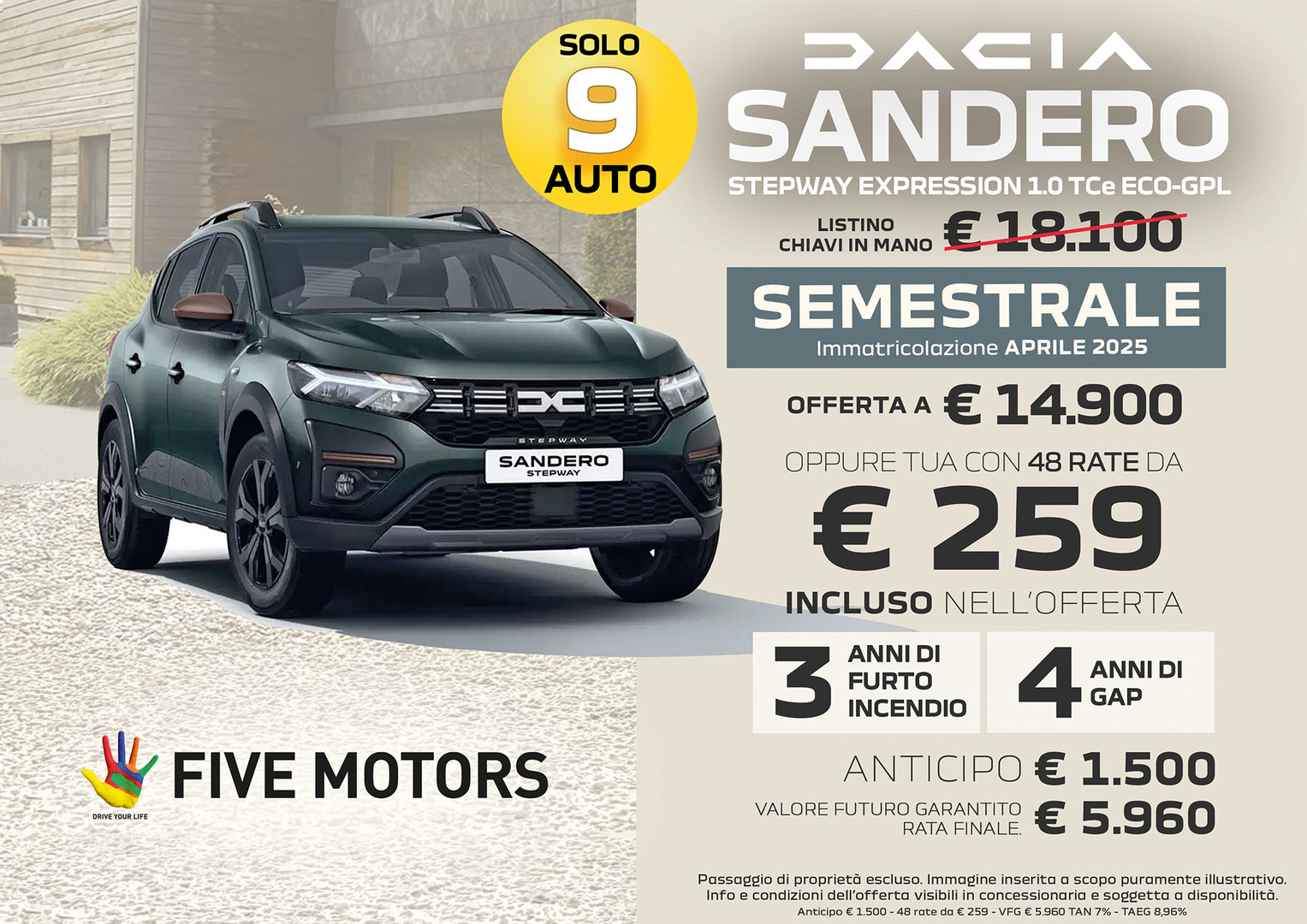 Il titolare del trattamento è Five Motors Srl con sede in Viale Unità d'Italia 601, 74122 Taranto (TA)