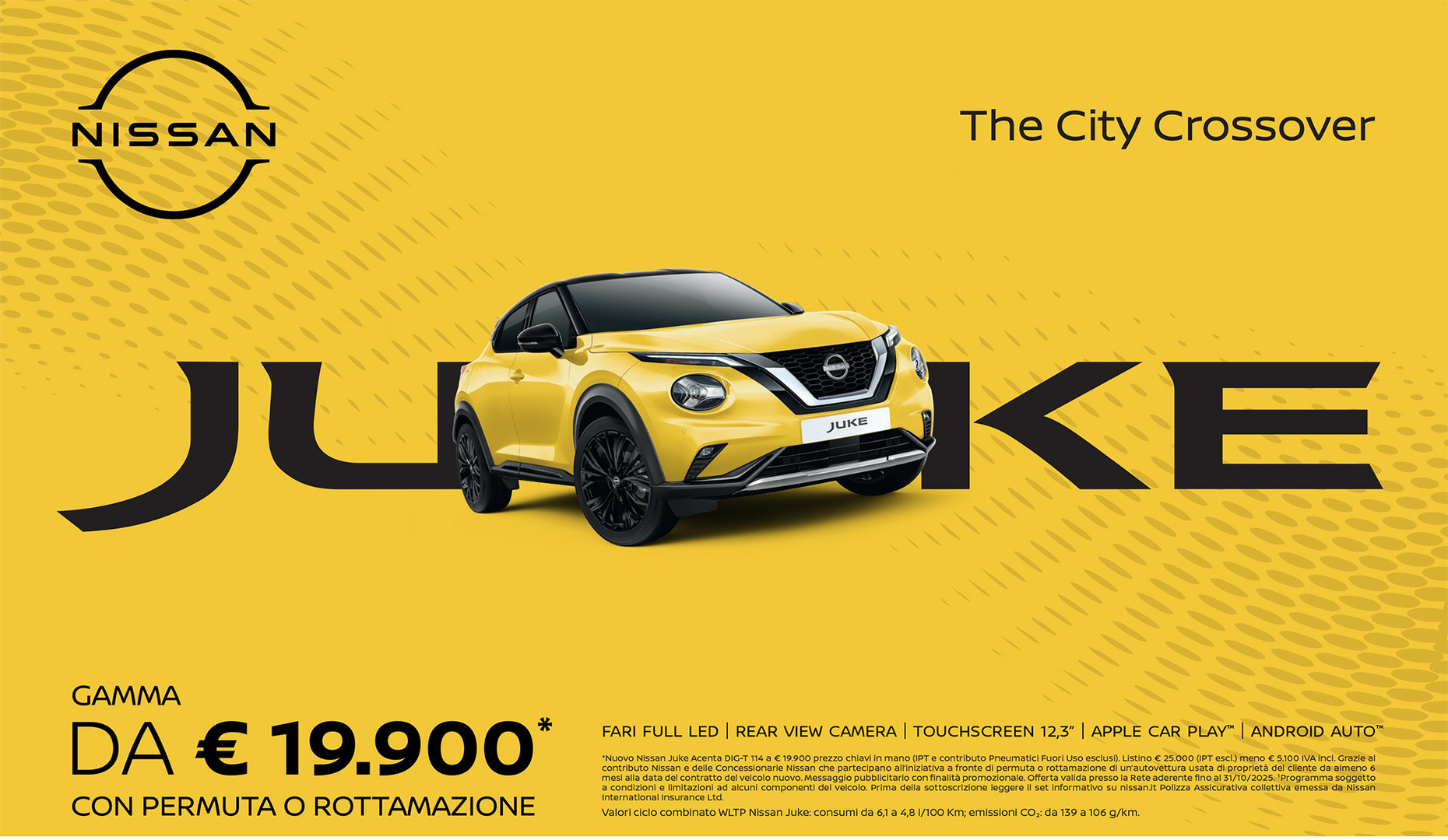 Salvo approvazione Nissan Financial Services. Documentazione precontrattuale ed assicurativa disponibile presso i punti vendita della rete Nissan e sul sito www.nissan-fs.it/trasparenza. Messaggio pubblicitario con finalità promozionale.