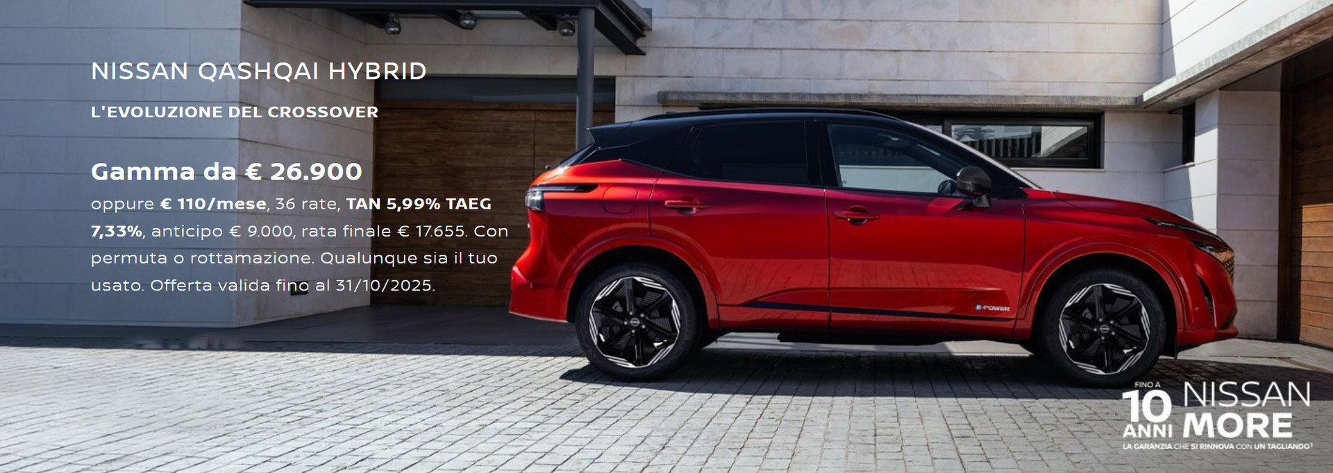 Salvo approvazione Nissan Financial Services. Documentazione precontrattuale ed assicurativa disponibile presso i punti vendita della rete Nissan e sul sito www.nissan-fs.it/trasparenza. Messaggio pubblicitario con finalità promozionale.