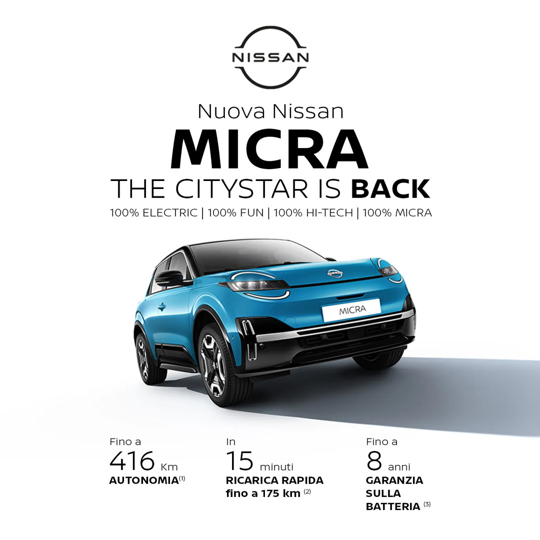 (3) Fino a 8 anni fi garanzia sulla batteria. Garanzia completa per 8 anni o 160.000km sulle batterie. Per maggiori informazioni, rivolgiti al tuo concessionario Nissan o consulta il libretto della garanzia.